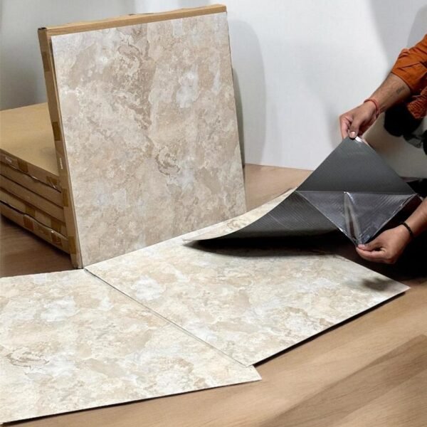 ?? Product Title   Beige Travertine Stone Self-Adhesive Vinyl Flooring Tiles (2×2 ft, 1.5mm Thick) – Peel and Stick (Beige